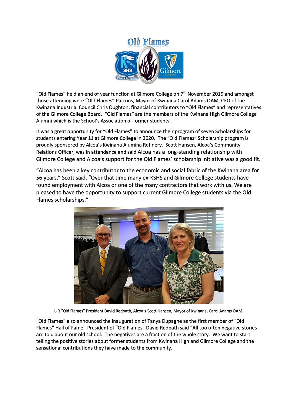 In a few weeks Gilmore College will be recognising high achievers and, importantly, awarding several prizes sponsored by our Alumni and sponsors.